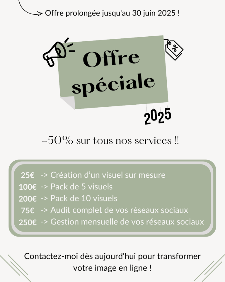 Tous mes visuels sont conçus pour refléter l'identité visuelle de votre marque et s'harmoniser avec votre style et vos valeurs.
